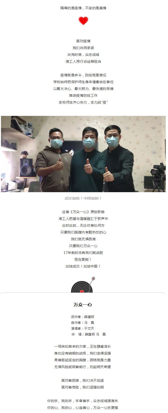淮工原創(chuàng)歌曲《萬眾一心》暖心上線,武漢加油!中國加油!